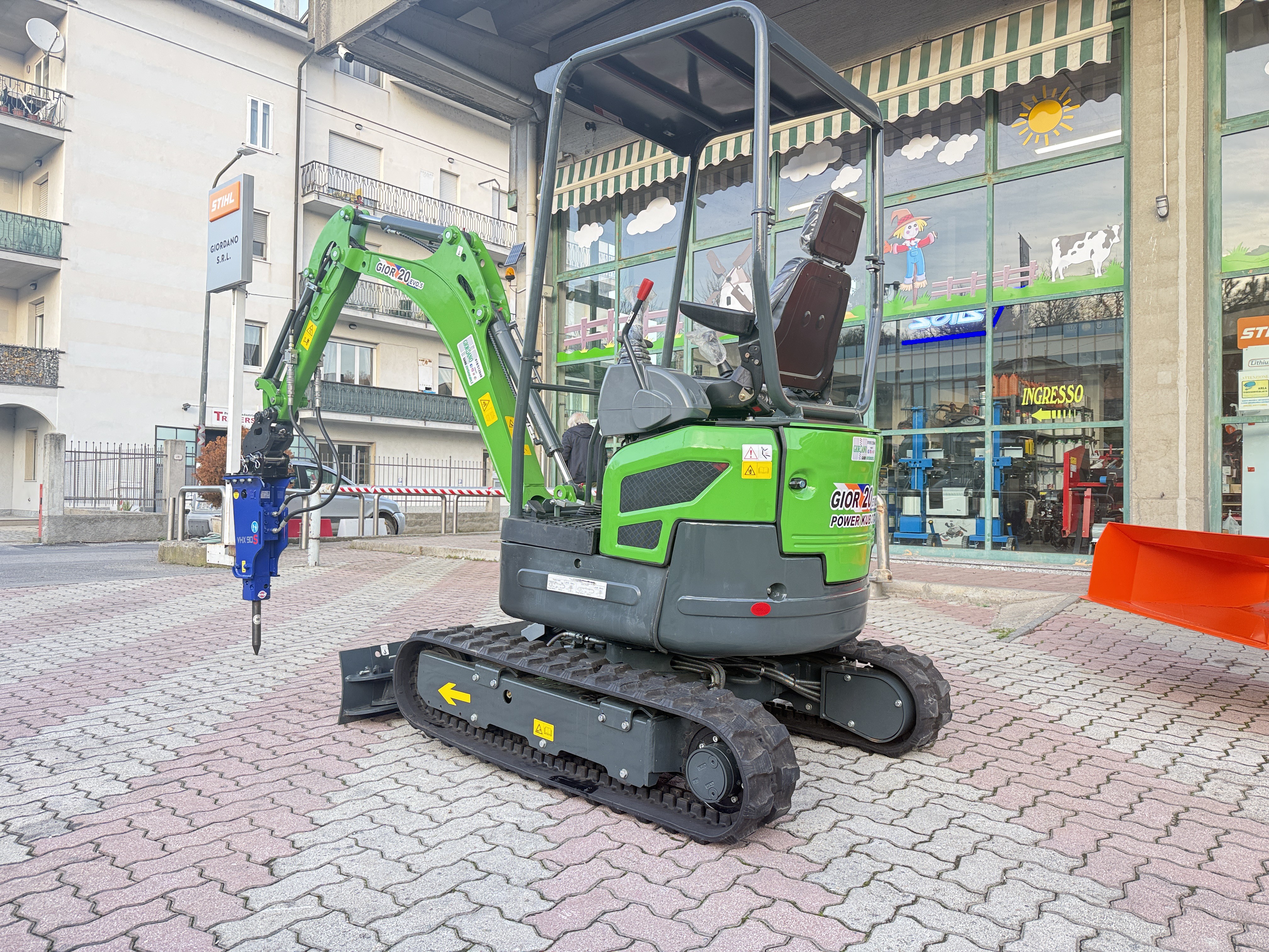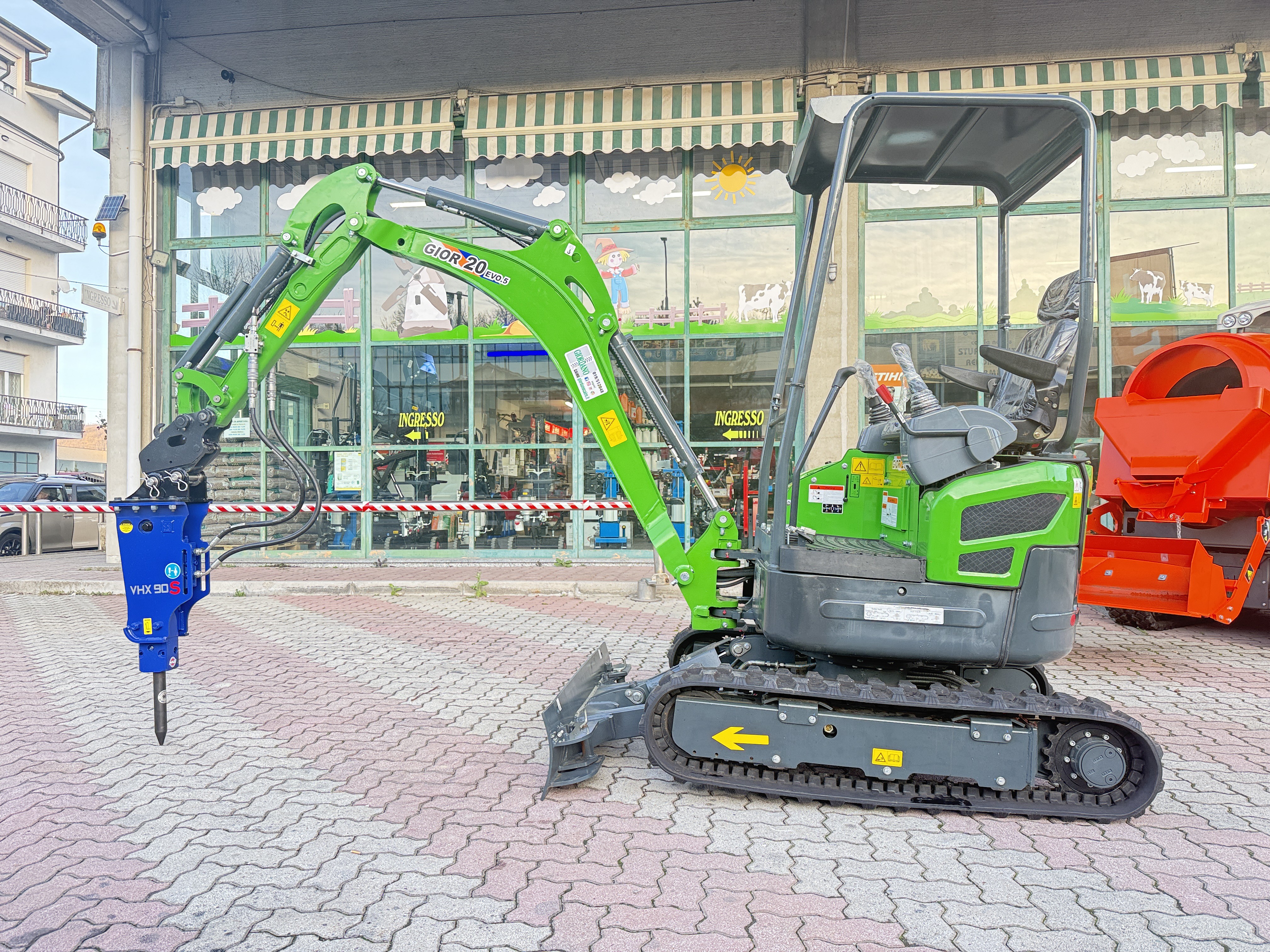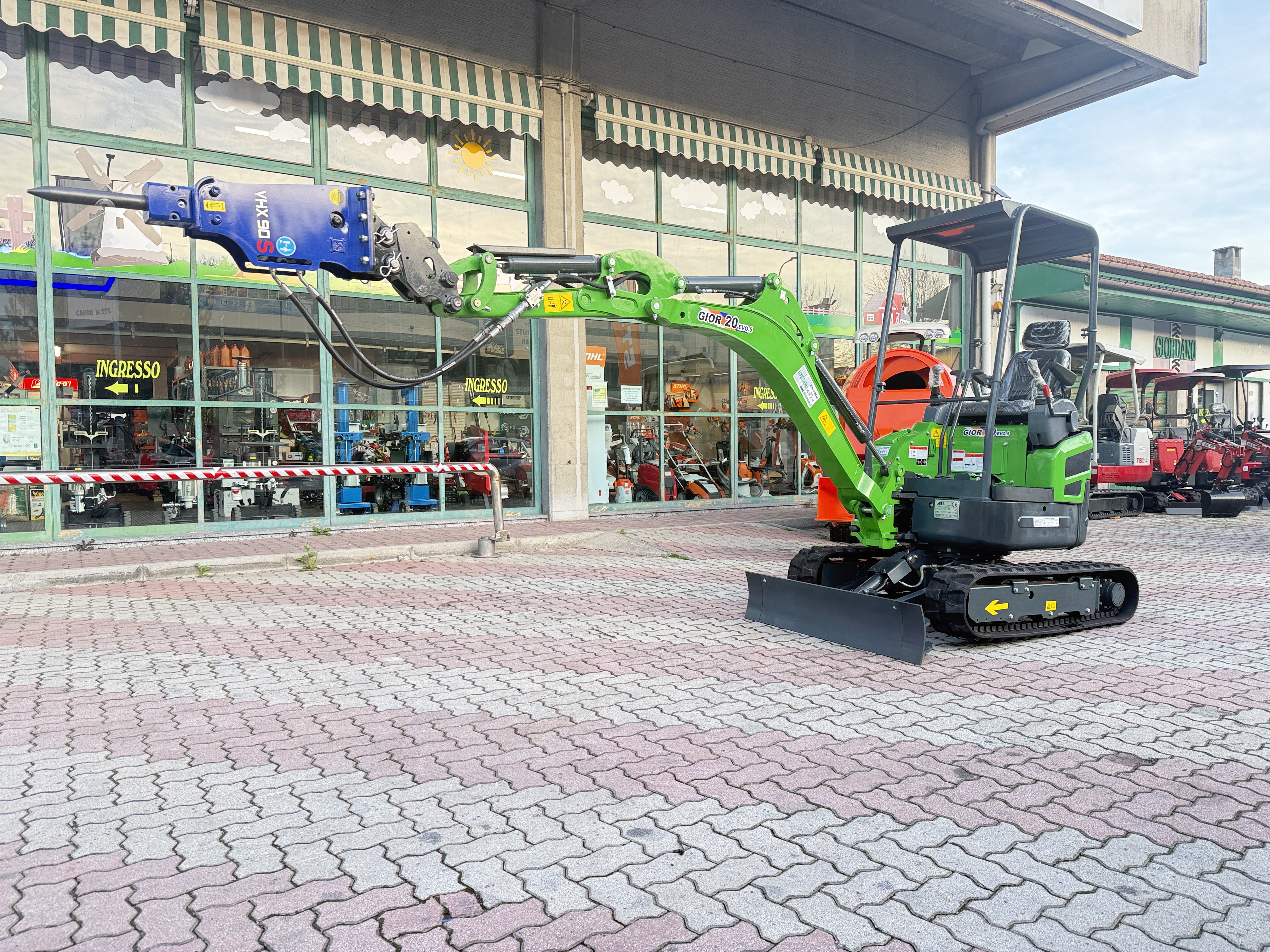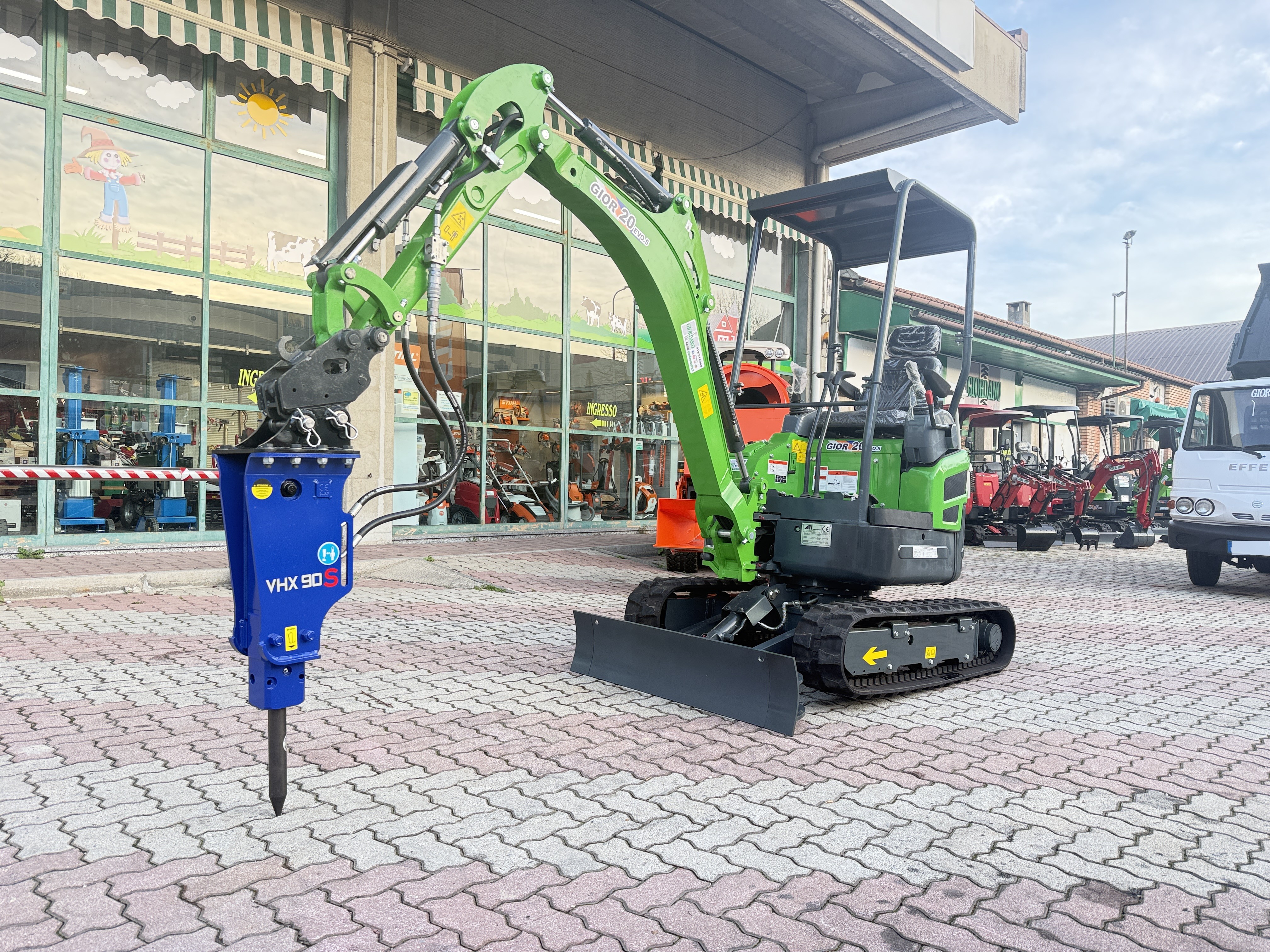 Miniescavatore GIOR 20 Evo.5 con Martello Vistarini - Carro Allargabile - Motore Kubota D902 a 3 Cilindri Raffreddato a liquido – Completo di MARTELLO IDRAULICO VISTARINI VHX 90 S Hydraulic Power Vistarini Peso Kg 95 SemiSilenziato con Attacco Rapido - Girosagoma – Kubota Line - Peso in Servizio Qli 19,50 – Carro Allargabile 760-1240 mm – Braccio Allungato - Contrappeso Integrato – Profondità di Scavo cm 285 – Completi di Attacco Martello & Attacco Trivella – Pompe Nachi e MotoRiduttori Bonfiglioli - Pistoni Esterni al Braccio - Comprese 3 Benne Attacco Rapido cm 60 & cm 30 con Denti – Arco Protezione Abbattibile - Serbatoio Carburante 18 Litri - 3 Pompe a Pistoni con Portata Variabile – ROPS a 4 Montanti con Tettuccio – Made in Italy - il tutto Nuovo di fabbrica - Pronta Consegna - Prezzo in Offerta - Possibilità Installazione Kit Industria 4.0 con Perizia Asseverata di Ingegnere Qualificato per Ottenere IperAmmortamento del 180% nell'Anno in Corso (Oltre Possibilità Contributo 10% a Fondo Perduto Legge Sabatini) - Richiedi Tranquillamente il Tuo Preventivo - Possibilità Pagament0 Mezzi & Prodotti in Massimo 120 Mesi Fino a 50.000 Euro con Delibera in Giornata (Interamente Online) in Tutta Europa - Consegna & Assistenza in Tutta ITALIA - Super Offertissima in Pronta Consegna -