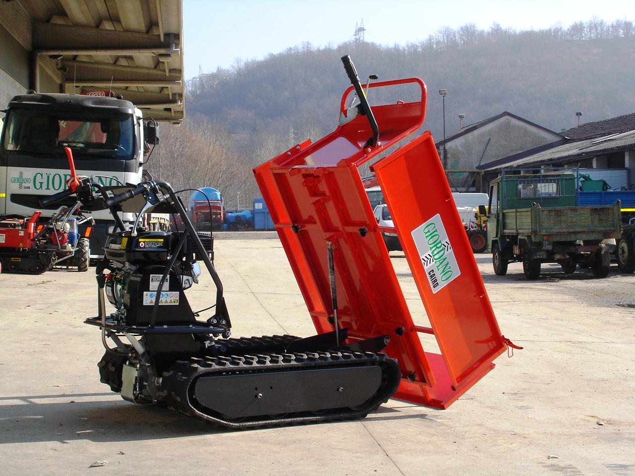 Motocarriola Cingolata Nuova GIOR. 500 Kg. FA - Motore Benzina 7 Hp. 220 CC OHV Valvole in Testa - Cambio Meccanico 3 Av + 1 Rm - Cassone Ribaltabile Manuale con pistoncino Idraulico - Sponde Estendibili ed Estraibili Totalmente - 2 Ganci Tendi Fune per ogni Sponda - Dimensione Cassone cm.110x65x40 - Portata Utile Kg 500 - Cingoli in Gomma con Carro Rinforzato a 6 Rulli - Lunghezza Cingolo cm. 115 con Doppio smusso Ant. Post. - Lunghezza Totale Macchina cm. 175 - Possibilità Finanziamento Intero Importo - - Garanzia Ufficiale 24 Mesi - Consegna & Assistenza in tutta ITALIA (Seguici anche su Facebook: Sempre Nuovi Video & Post. Settimanali)