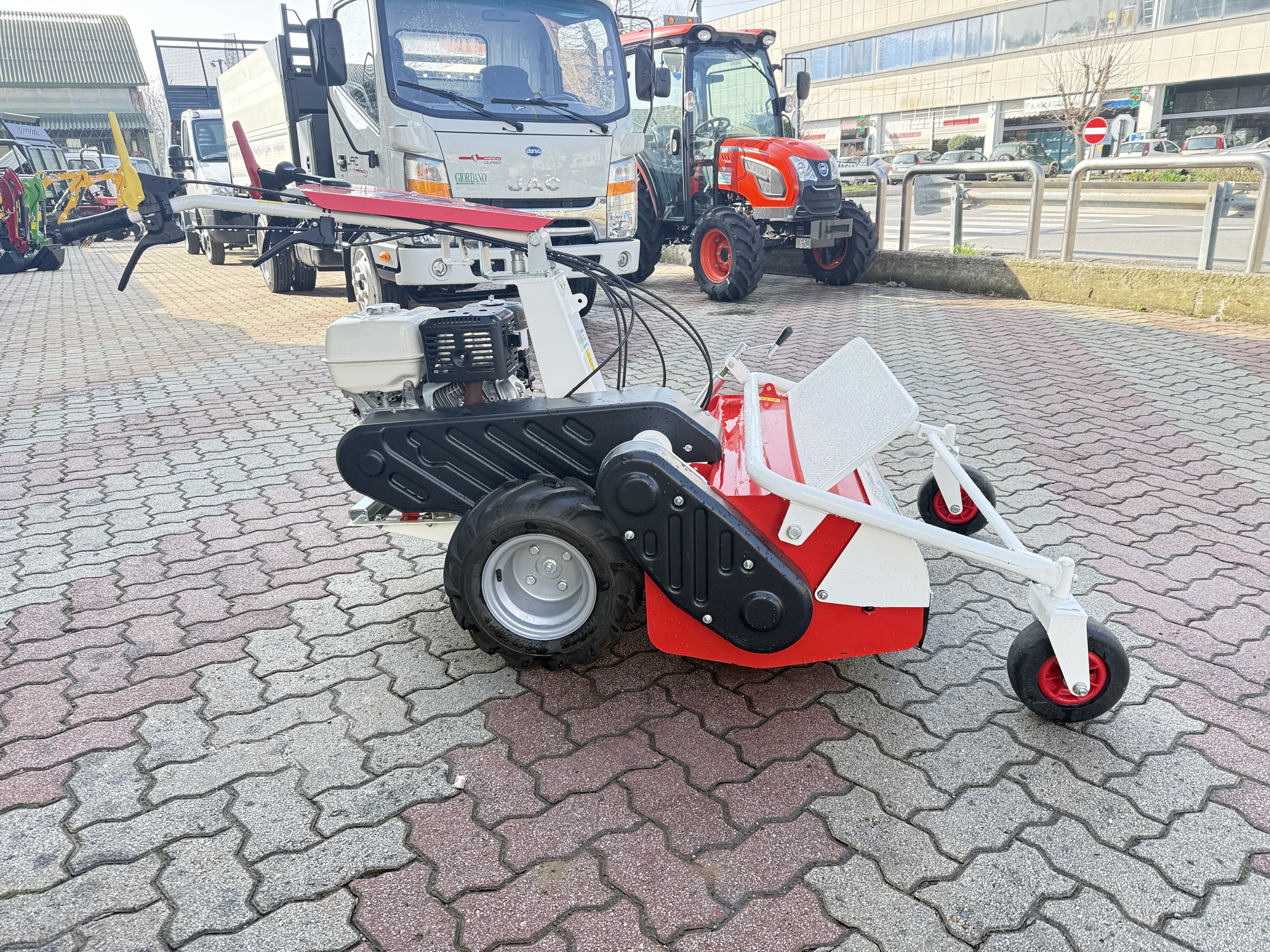 Mototrincia Gommata Tekna TT 80 - Motore Honda GX 390 - 4 Tempi Benzina GX 390 cc Euro5 - Super Professionale - Interamente Costruita in ITALIA - Cambio con Comodissima Leva Centrale su Cruscotto - Cambio Interamente Made in Italy con Sincronizzatori Integrati 3 AV + 1 RM - Larghezza Taglio cm 85 - Possibilità Sollevamento Testata Anteriore di cm 40 - Gruppo Taglio con Rotore a 46 Flagelli - Altezza Taglio 20-85 mm - Freno di Sicurezza Arresto Rotore UNI EN 12733 - Freno Sicurezza Automatico a Ganasce - Frizioni di Sterzo Indipendenti a Bagno d'Olio Rinforzate Per la Massima Precisione di Manovra - Manubrio Regolabile a 4 posizioni Verticali e 5 Laterali - Dimensioni 186x103x104 cm - Peso 230 Kg - Carro Cingolato versione Allungata con Massima Stabilità in Pendenza (Unico sul Mercato!) - Testata Trinciante con Carcassa Rinforzata - Disponibili Versione Cingolata e/o con Larghezza Taglio cm 65 - Prezzo in Offerta - Richiedi Tranquillamente il Tuo Preventivo - Possibilità Pagament0 Mezzi & Prodotti in Massimo 120 Mesi Fino a 50.000 Euro con Delibera in Giornata (Interamente Online) in Tutta Europa - Consegna & Assistenza in Tutta ITALIA - Super Offertissima in Pronta Consegna -