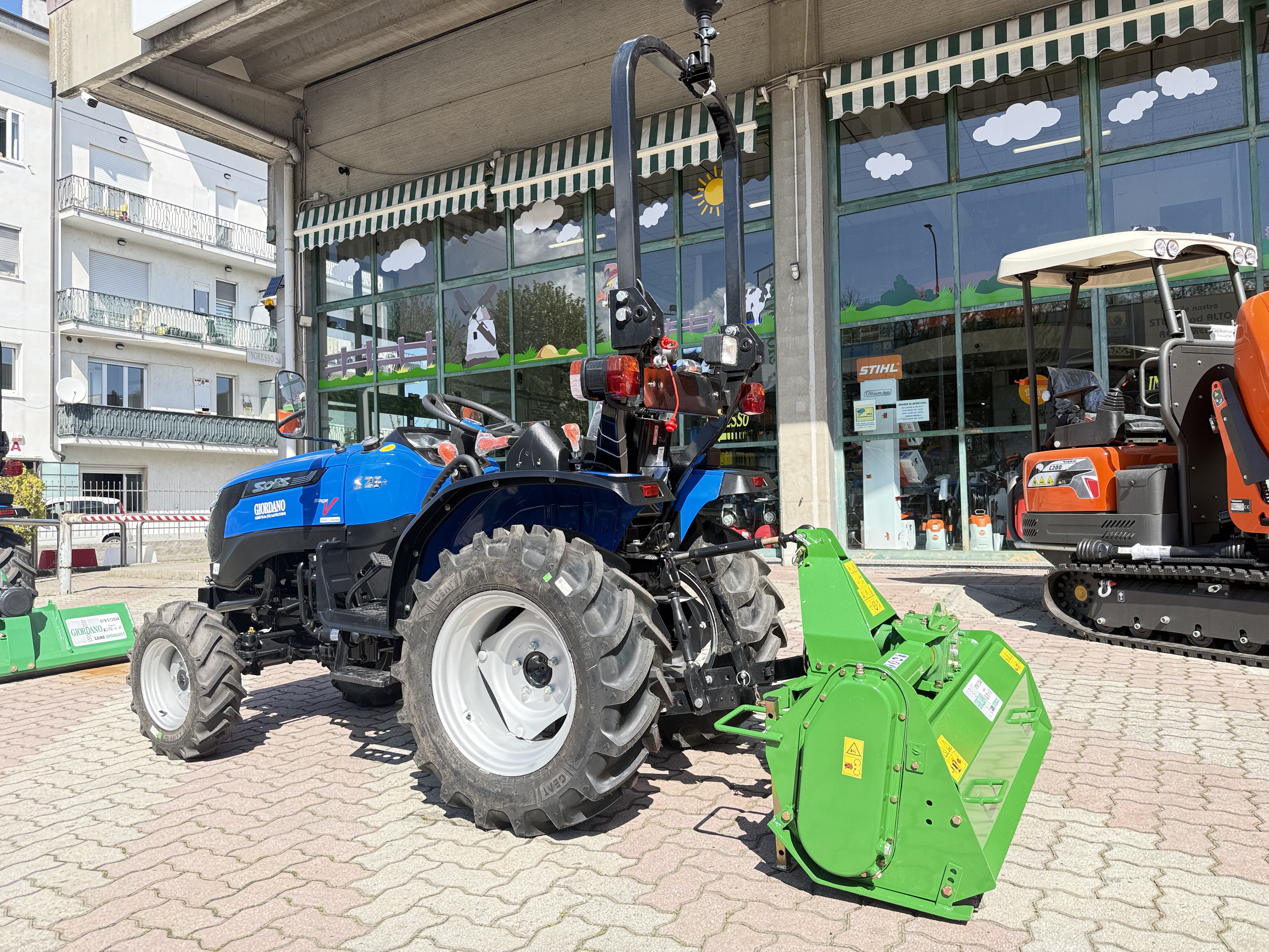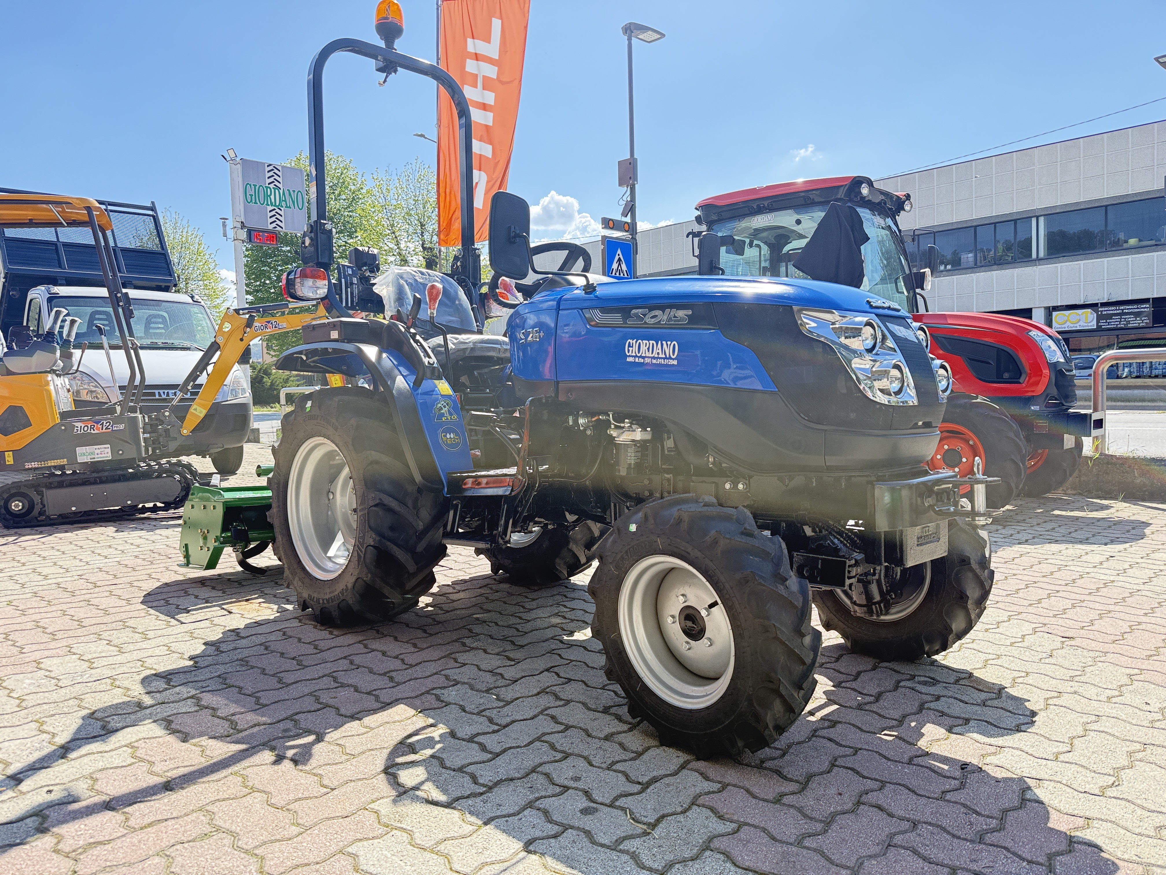 Trattore SOLIS S26+ - Nuovo Modello dotato di Cambio a Leve Laterali - Fornito Completo di FRESA TL Larghezza di Lavoro cm 115 - Possibilità Trincia EFG 115 Regolabile con Spostamento Manuale, Forca Pallet Sollevamento Kg 300, Forca per Rotoloni Fienagione e/o Forca per Letame - Doppia Trazione - Motore MITSUBISHI 1.318 cc 3 Cilindri in Linea Euro5 (STAGE V) - Filtro Aria a Secco con Sensore Intasamento - Trasmissione Meccanica con Cambio 6 AV + 2 RM Sincronizzato - Trazione Integrale 4 Ruote Motrici Disinseribile - Bloccaggio Differenziale Posteriore a Pedale - Capacità Serbatoio Gasolio lt 26,5 - Larghezza Minima Esterna cm 112 con Ruote a Dischi Registrabili 8 Posizioni - Gommatura Radiale - Ponte Anteriore Maggiorato con Raggio di Sterzata SuperSteer 2,3 metri con Idroguida - Cofano Motore Apribile Frontalmente per Agevole Manutezione - Arco di Protezione Reclinabile a Normativa - Distributore Idraulico Posteriore a Doppio Effetto - Sollevatore Posteriore a Sforzo Controllato con 10 Regolazioni & Capacità di Sollevamento Kg 600 - Freno di Stazionamento - Presa di Forza Posteriore 540 & 1.000 giri/min - 2 Specchietti Retrovisori Ripiegabili - Fanaleria Anteriore a 4 Fari - Faretto Posteriore Supplementare - Lampeggiante / GiroFaro - 2 Contrappesi Anteriori Integrati 15 Kg Cadauno - Sedile Molleggiato con Regolazione & Cintura di Sicurezza - 2 Ganci Traino Posteriore & Anteriore - Peso Totale Kg 1.070 - Documentazione Immatricolazione & Circolazione Stradale - Garanzia Ufficiale 5 Anni - Possibilità di Sostituire Attrezzo Terminale con Caricatore Frontale Originale Solis 320 Autolivellante completo di Benna Larghezza cm 125 Completamente Sfilabile , Lama neve , Aratro, Gancio per Sollevamento Pesi - Disponibile Intera Gamma Trattori SOLIS fino a 90 Hp - Prezzo in Offerta - Possibilità Installazione Kit Industria 4.0 con Perizia Asseverata di Ingegnere Qualificato per Ottenere IperAmmortamento del 180% nell'Anno in Corso (Oltre Possibilità Contributo 10% a Fondo Perduto Legge Sabatini) - Richiedi Tranquillamente il Tuo Preventivo - Possibilità Pagament0 Mezzi & Prodotti in Massimo 120 Mesi Fino a 50.000 Euro con Delibera in Giornata (Interamente Online) in Tutta Europa - Consegna & Assistenza in Tutta ITALIA - Super Offertissima in Pronta Consegna -