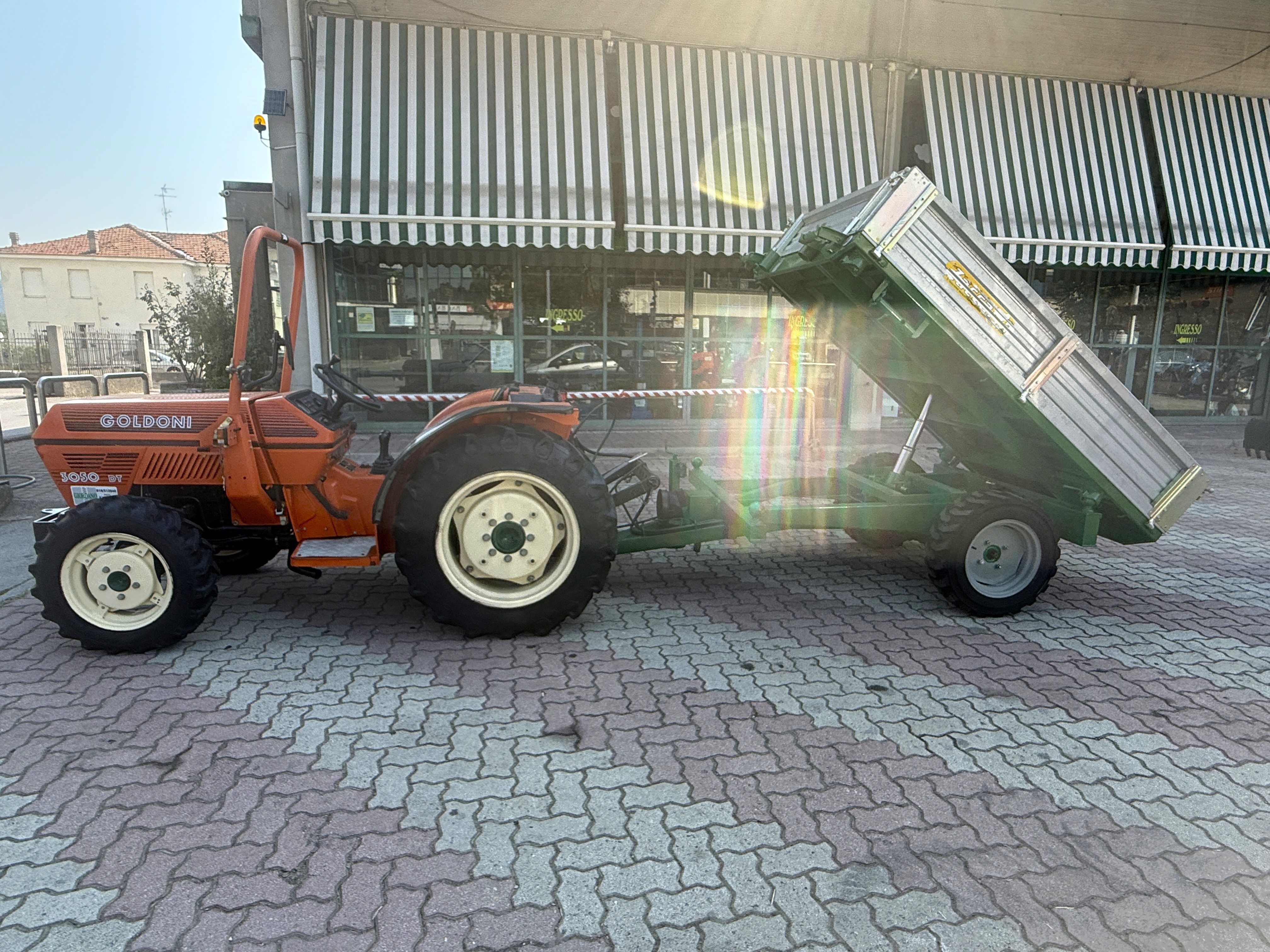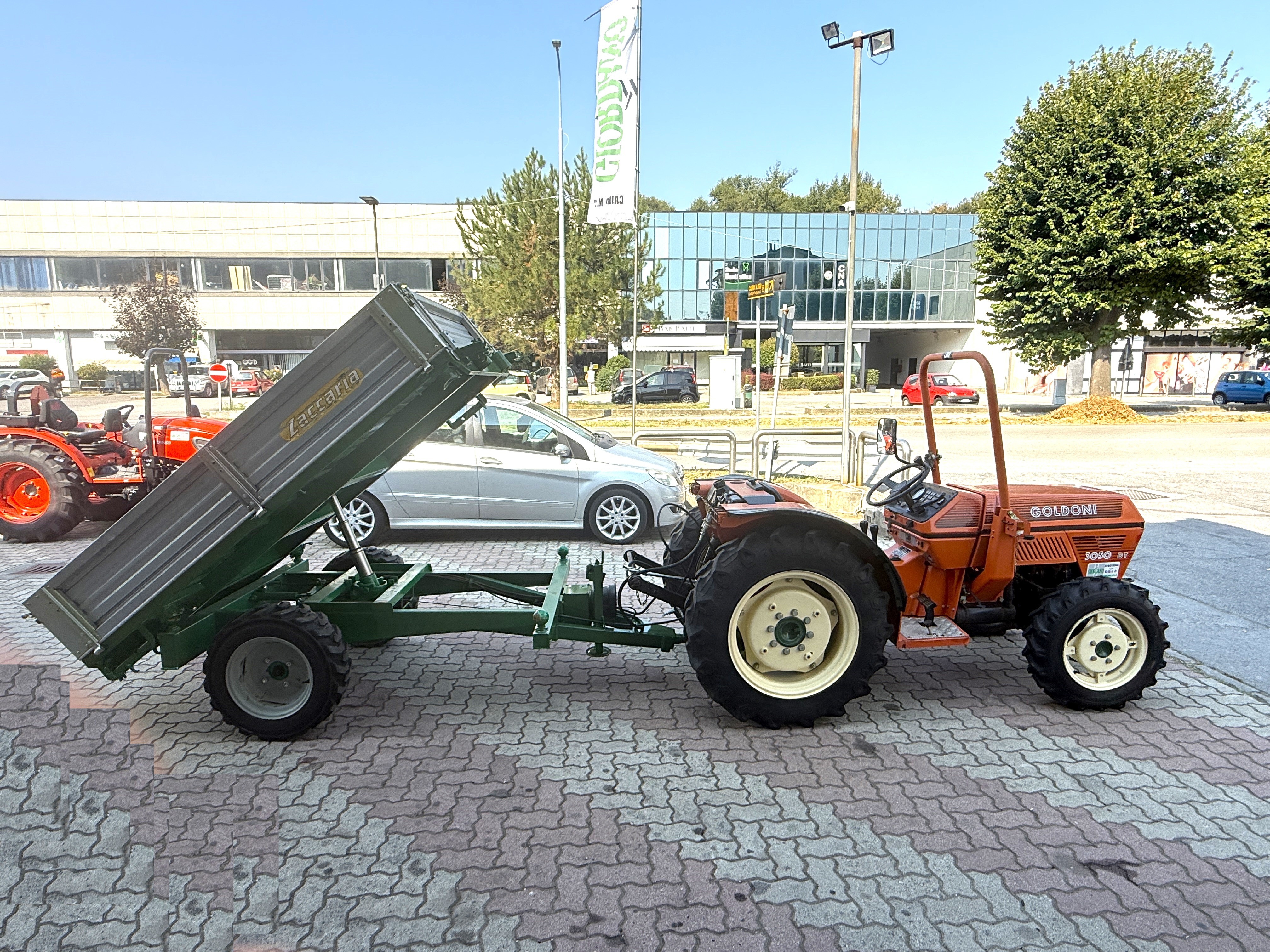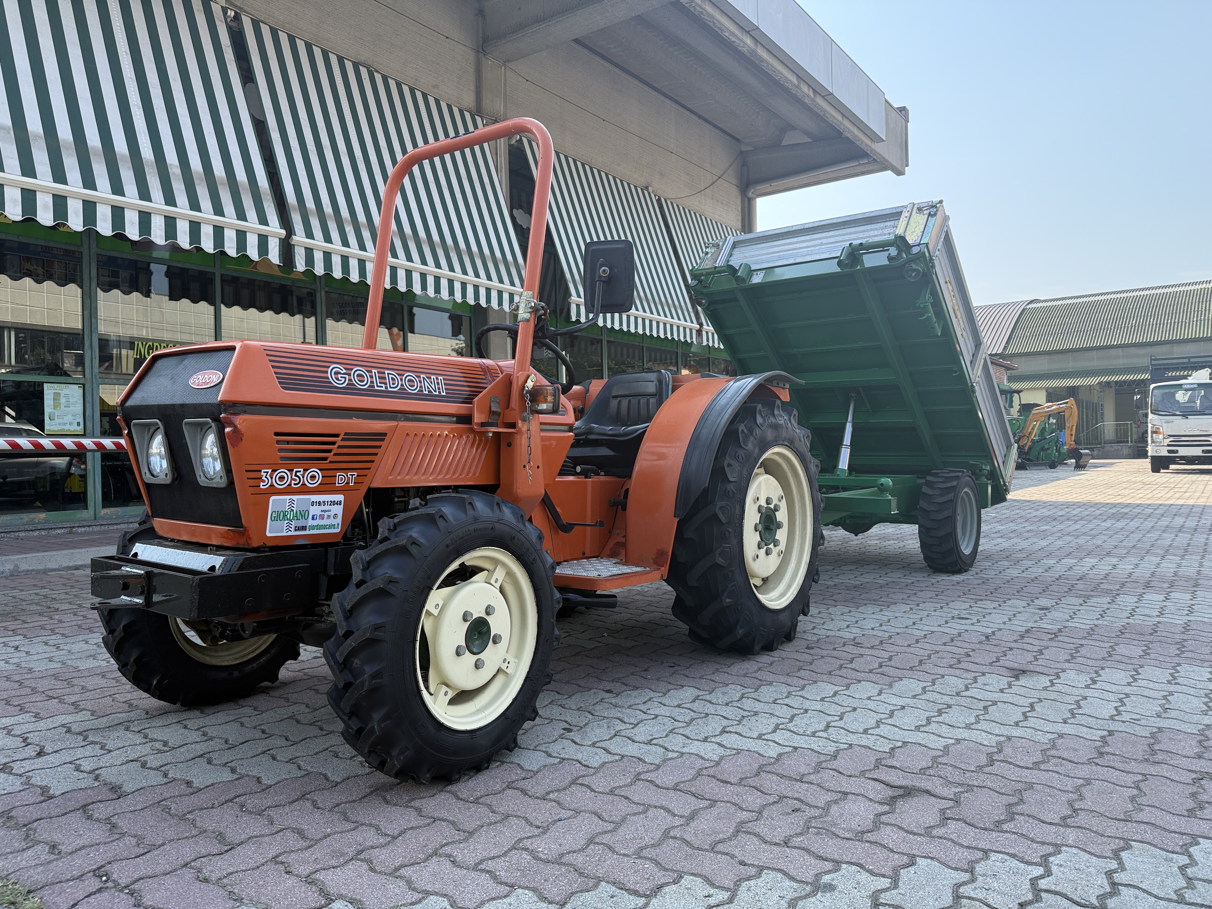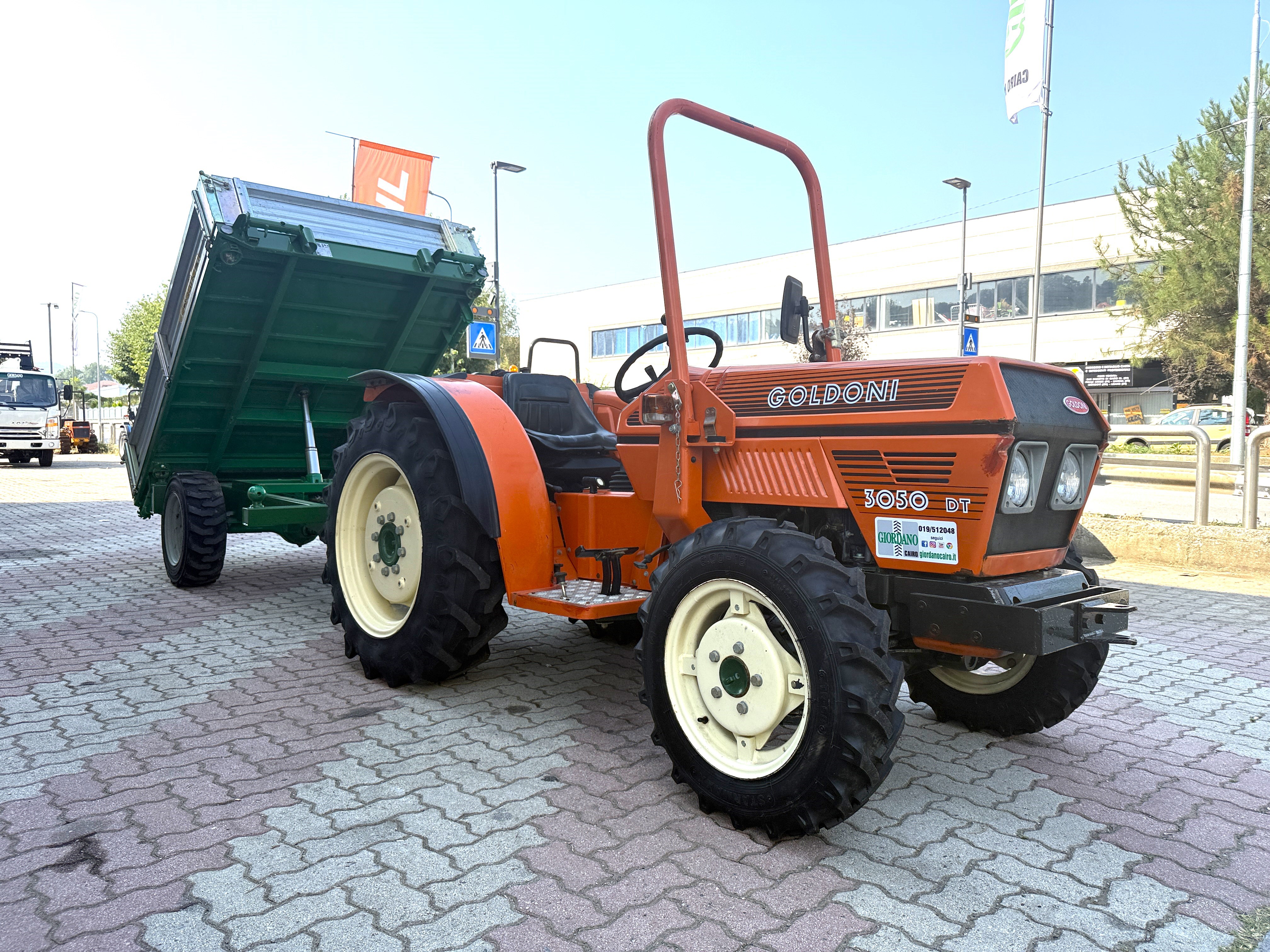 Trattorino Usato GOLDONI 3050 DT - PERFETTO SOLO 790 ORE - Motore VM 3 Cilindri Raffreddato a Liquido Hp 50 - Cambio 8 AV + 4 RM - Idroguida - Presa di Forza 540 & Sincronizzata - 2 Distributori Idraulici - Gommato NUOVO - Larghezza Esterna cm 135 con Cerchi Registrabili a 8 Posizioni - Poche Ore Lavoro - Tenuto Perfettamente - Completo di RIMORCHIO ZACCARIA con Ruote Motrici & Frenatura Idraulica PARI NUOVO - Ribaltamento Idraulico Trilaterale - Dimensioni Rimorchio cm 150 x 240 - Sponda Zincata cm 40 - Prezzo in Offerta - Richiedi Tranquillamente il Tuo Preventivo - Possibilità Pagament0 Mezzi & Prodotti in Massimo 120 Mesi Fino a 50.000 Euro con Delibera in Giornata (Interamente Online) in Tutta Europa - Consegna & Assistenza in Tutta ITALIA - Super Offertissima in Pronta Consegna -